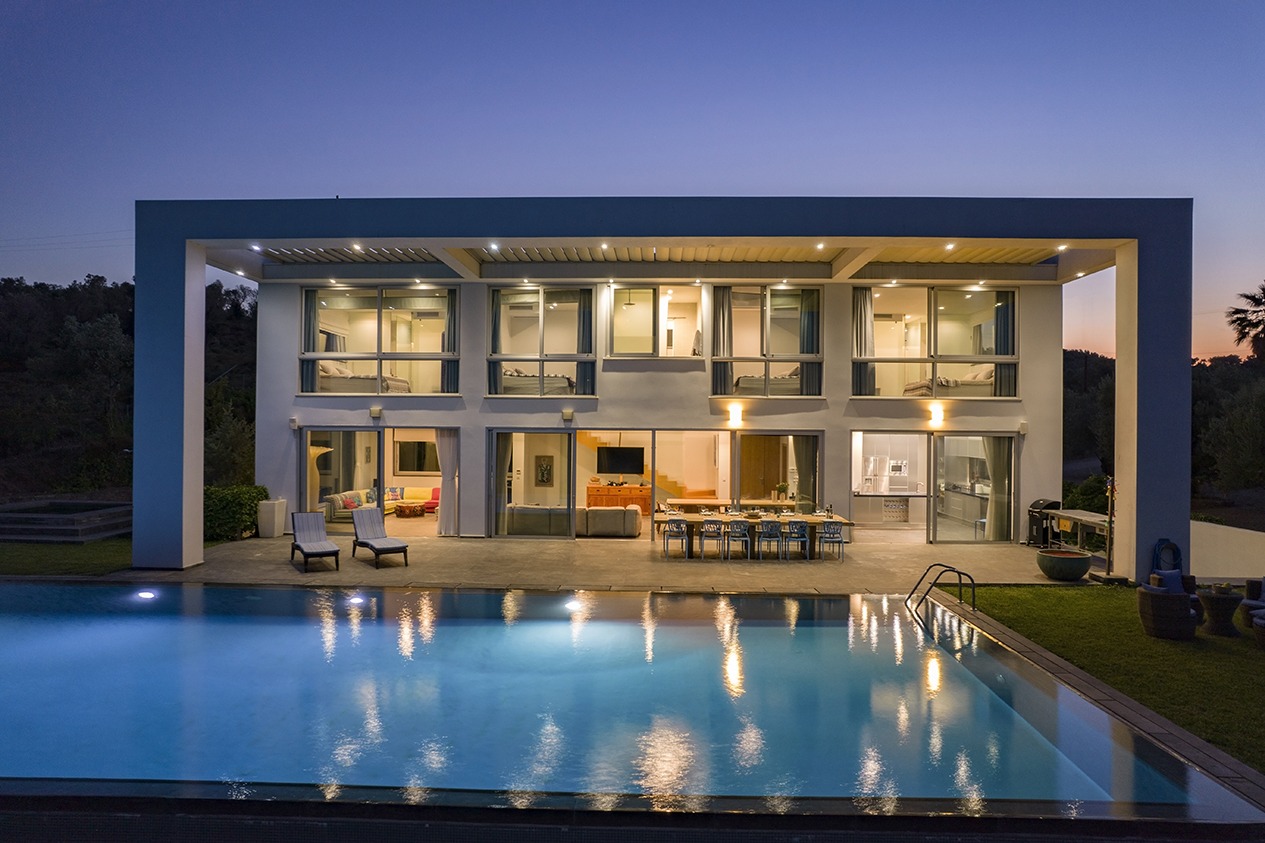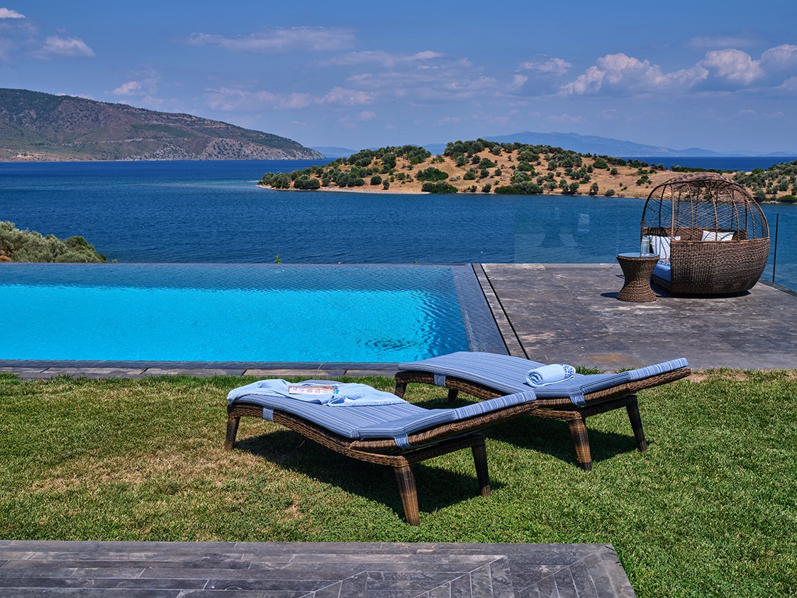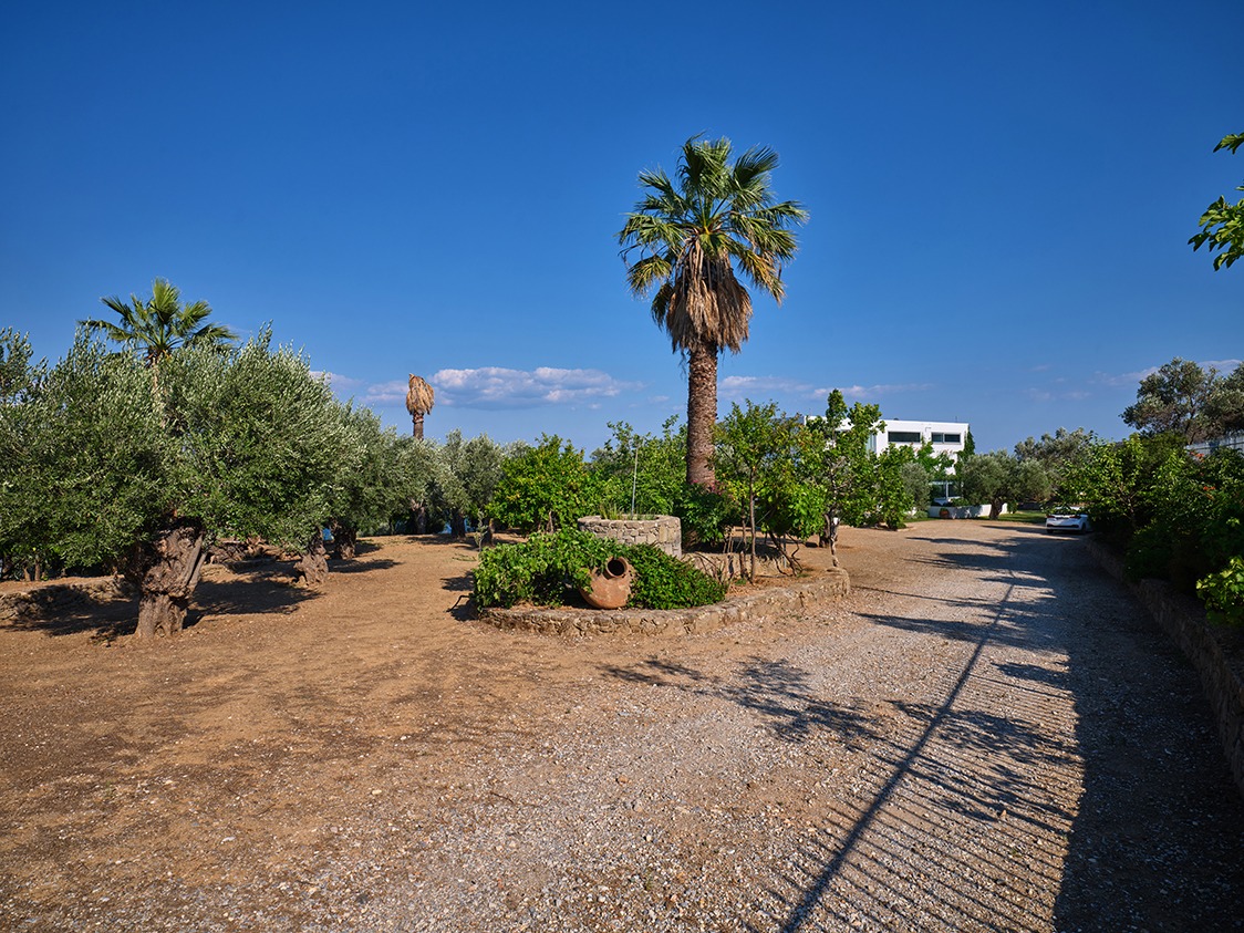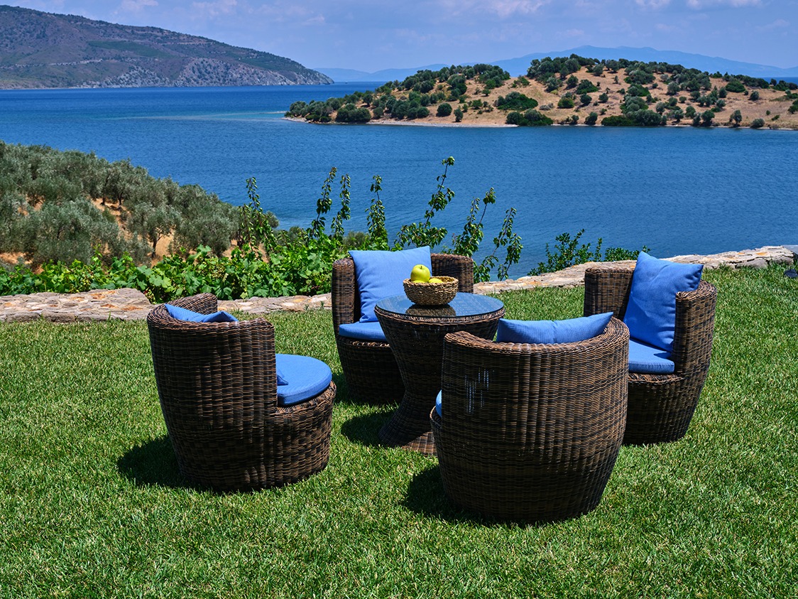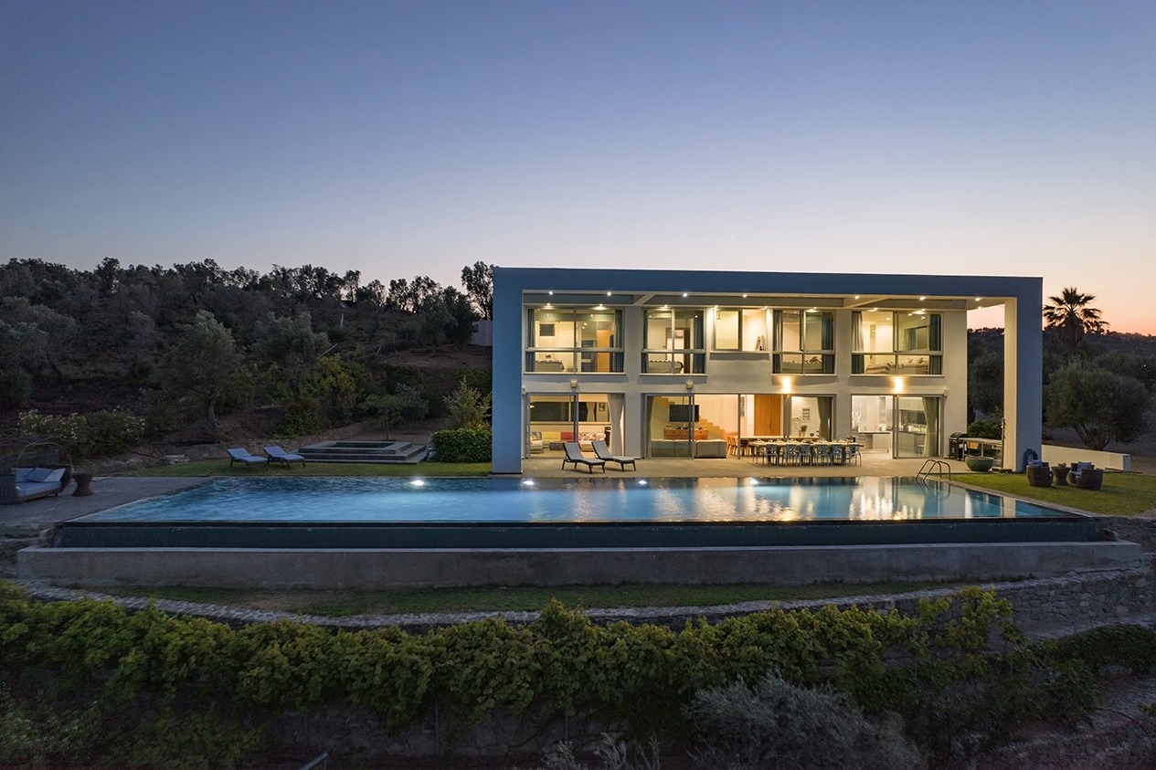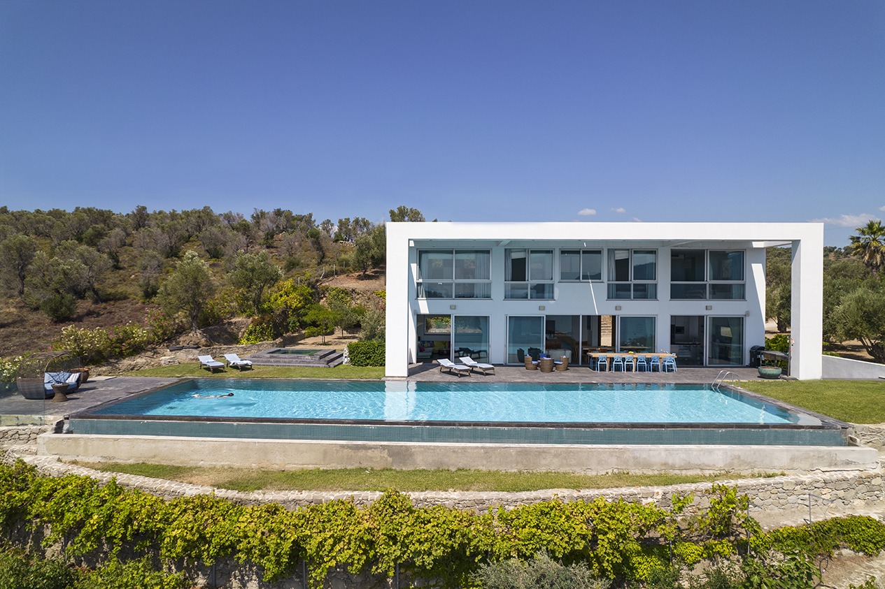 The villa is located in Fteli, an area on the southeast coast of Lesvos The location ensures privacy and seclusion, 25 drive minutes from Mitilini, Lesbos Capital. The villa overlooks the picturesque bay and the peninsula, behind spreads the Aegean Sea. The area is a coast-lined oasis in an olive forest, with beautiful views of lush green trees and sea-blue waters. Follow the private pathway from the villa which leads to a floating dock where you may anchor your yacht.